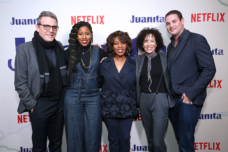 - NEW YORK, NEW YORK – MARCH 07: (L-R) Writer Roderick Spencer, producer Mel Jones, actress Alfre Woodard, producers Stephanie Allain and Jason Michael Berman attend “Juanita” Special Screening on March 07, 2019 in New York City. (Photo by Monica Schipper/Getty Images for Netflix)